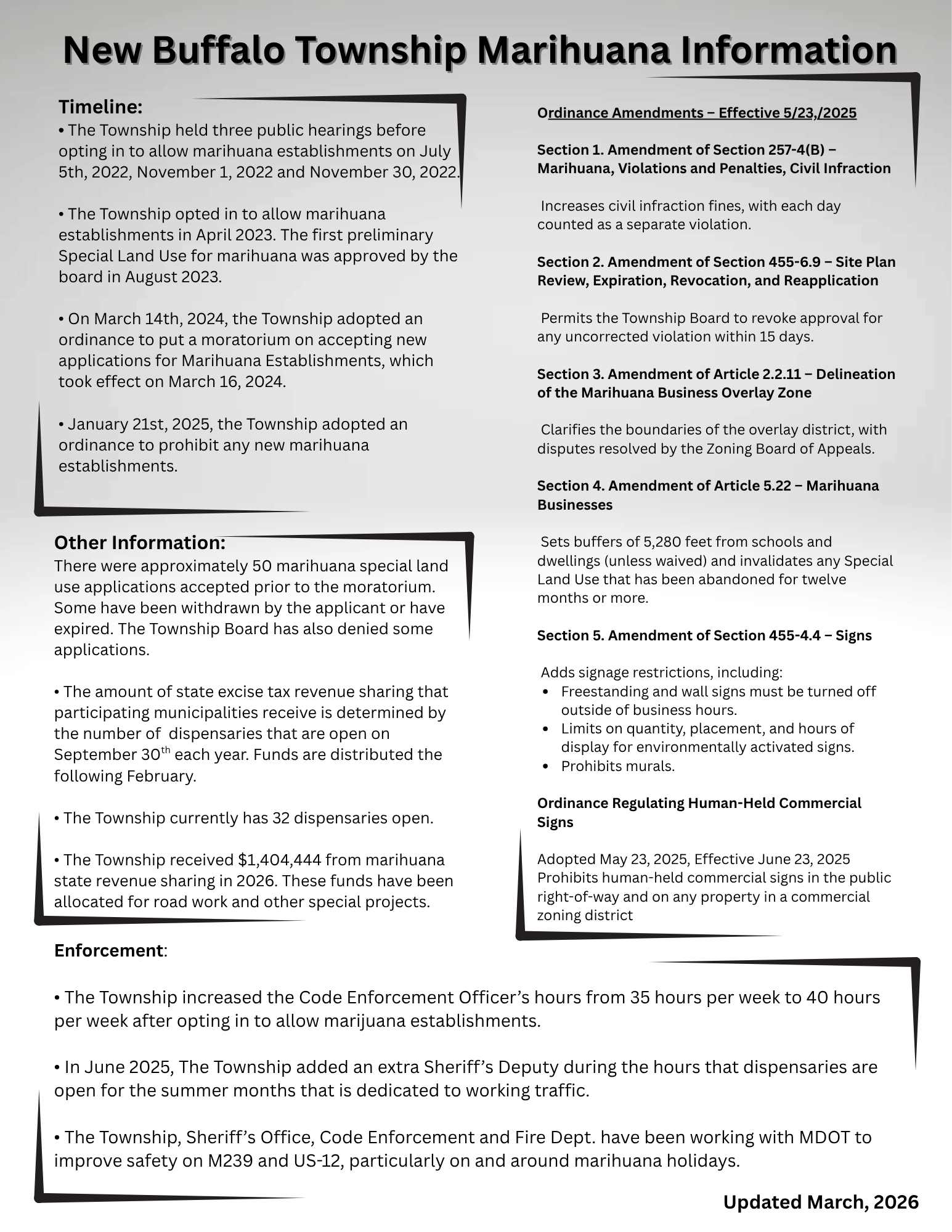 Learn when and how the township opted to allow marijuana establishments, and to see how excise tax revenue will be allocated